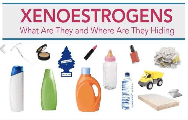 Xenoestrogens are man-made chemicals that disrupt the endocrine system. Many chemicals act as xenoestrogens and are found in the water, in plastics, food chemicals, and food preservatives. Since these household items are so common, it’s best to make swaps to glass or stainless steel wherever possible and take measures to consistently support the body and it’s elimination processes.